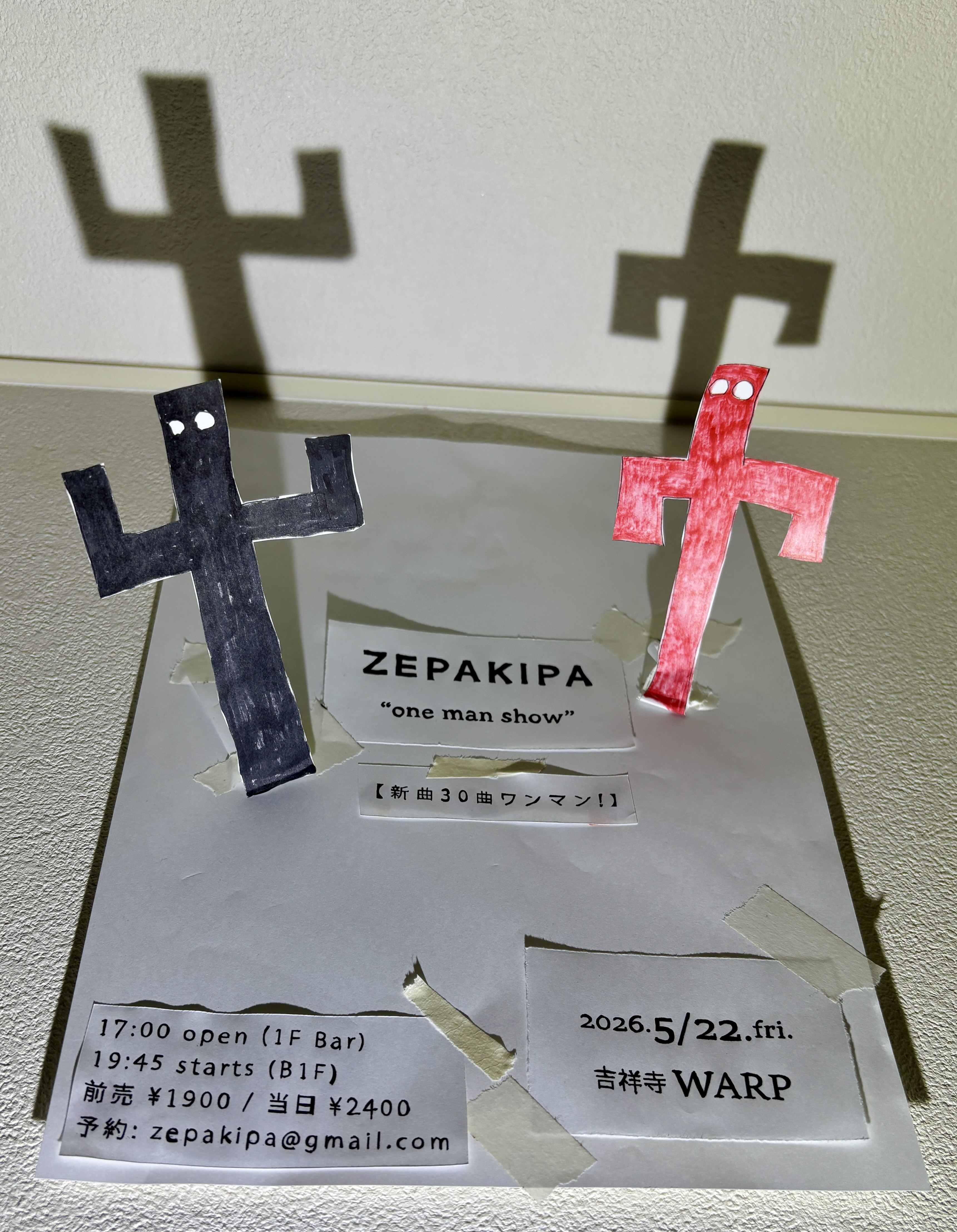2026.5/22.fri. 吉祥寺WARP / kichijoji, Tokyo ZEPAKIPA "one man show" - 新曲30曲ワンマン!- 17:00 open (1F Bar) 19:45 starts (B1F) 前売 1900yen / 当日 2400yen +1drink 予約: yoyaku1999@gmail.com |